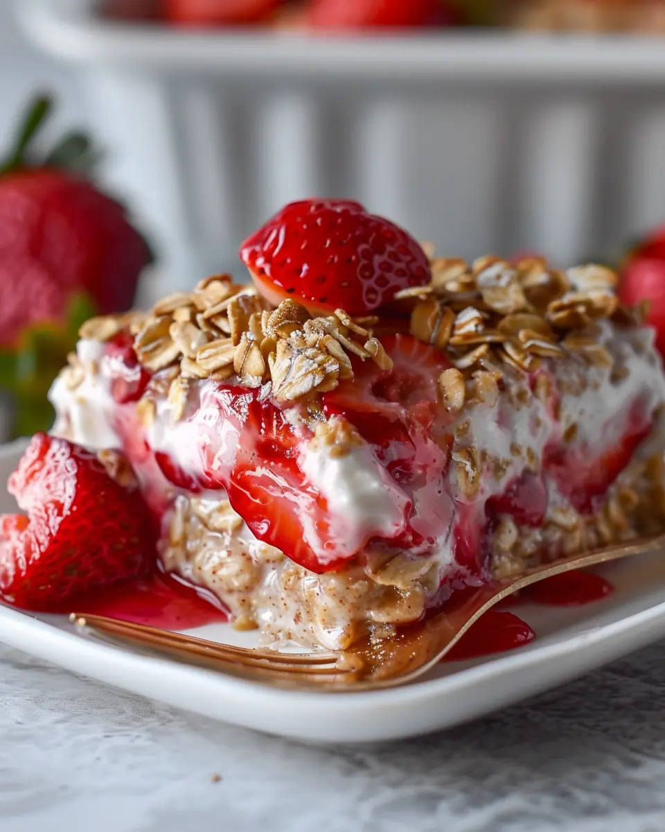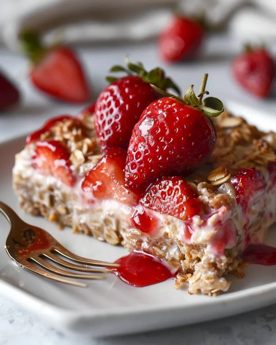 Start your day with this delightful Strawberry Cheesecake Baked Oatmeal, a perfect blend of flavors and textures.