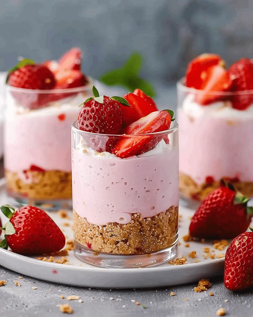 Indulge in the creamy, dreamy delight of Strawberry Cheesecake Mousse, a perfect dessert for any occasion.