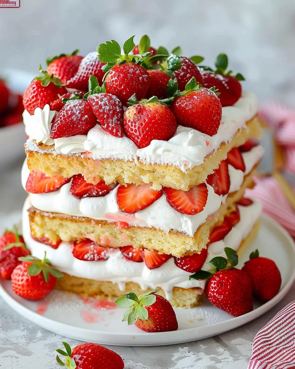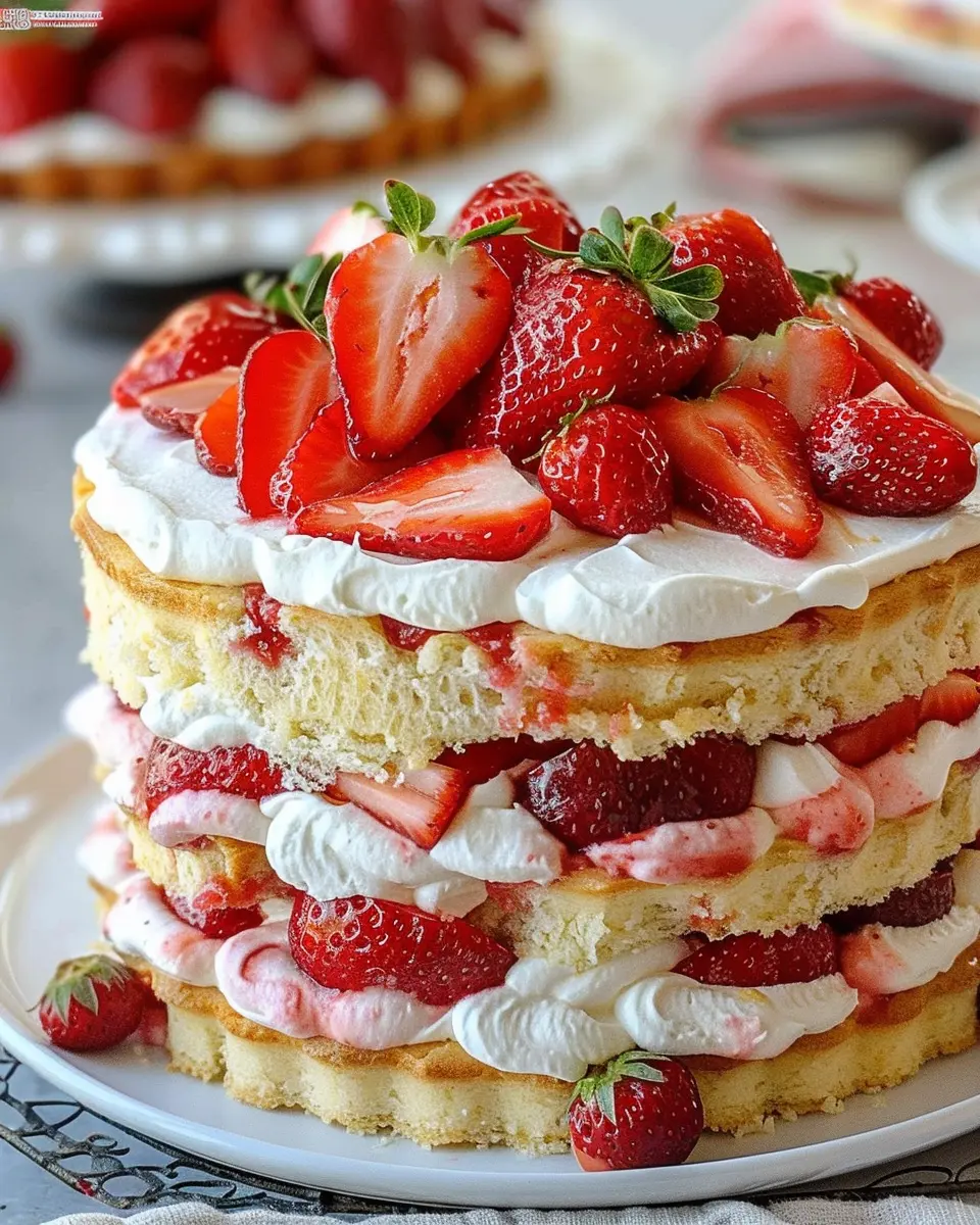 Enjoy the ultimate summer dessert with this Strawberry Shortcake Cake, combining layers of fluffy cake, fresh strawberries, and whipped cream.