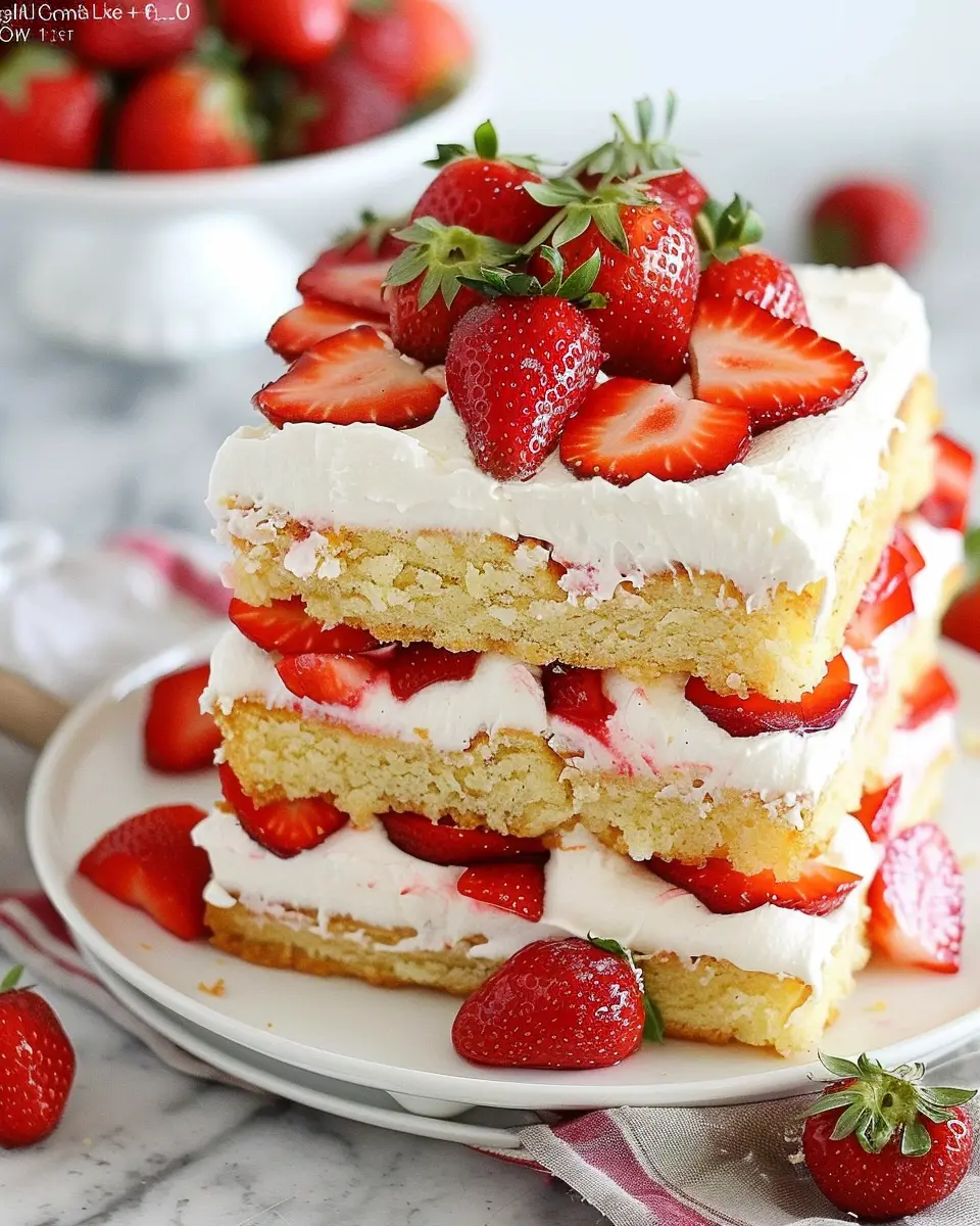 Plus, fresh strawberries bring a burst of flavor and nutrition, making every slice feel like a mini celebration. Feeling adventurous? You can even try adding layers of whipped cream or experimenting with different fruits! For more baking tips, check out resources like King Arthur Baking or Serious Eats. Happy baking!