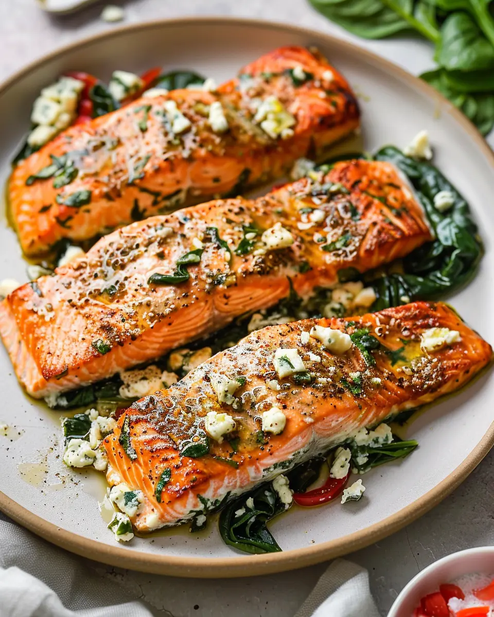 The star of this dish, salmon, is a fantastic source of heart-healthy omega-3 fatty acids, which are known to lower inflammation and support brain health. Meanwhile, spinach is packed with vitamins A, C, and K, making it a nutritional powerhouse that supports your immune system and improves skin health. Finally, feta cheese not only adds a creamy texture but is also rich in calcium and contributes to bone health. If you’d like to dive deeper into the nutritional benefits of these ingredients, check out sources like the USDA Nutrient Database.