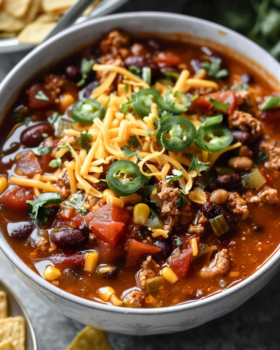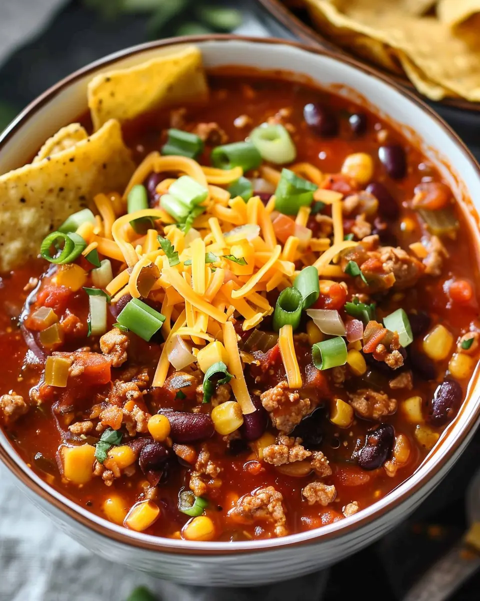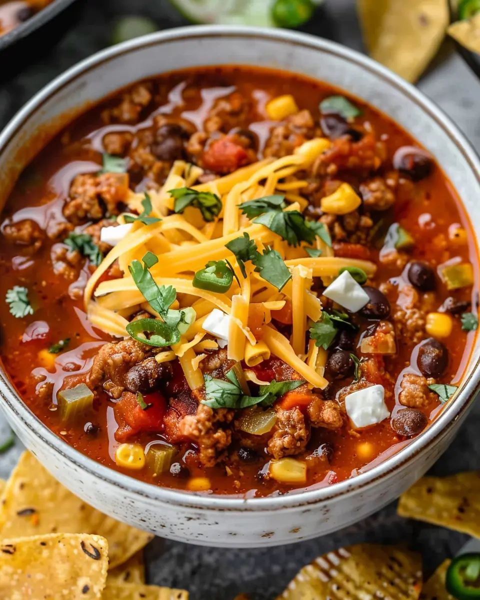 PrintTaco Soup: The Easiest Family-Friendly Recipe with Turkey Bacon