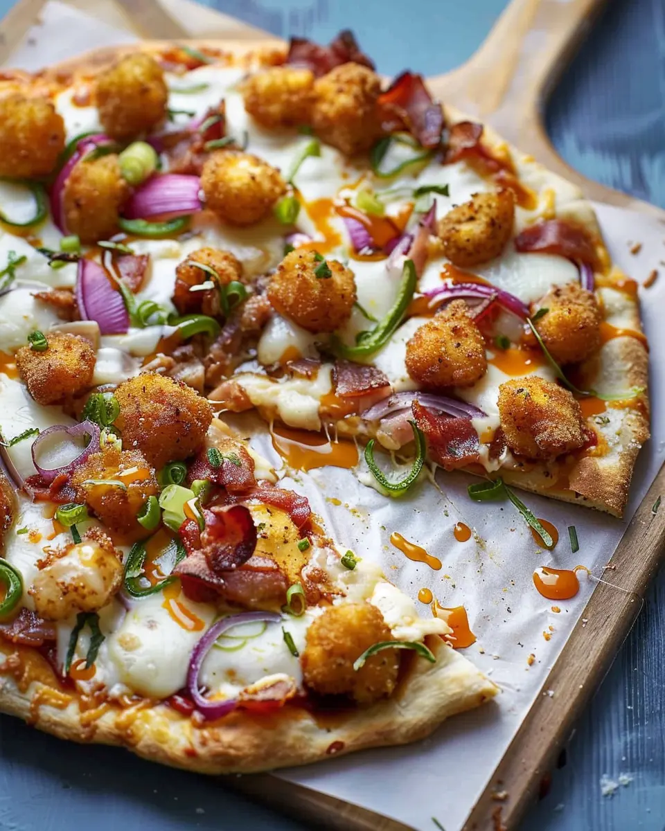 Keywords: Tater Tot Pizza, comfort food, pizza recipe, indulgent pizza